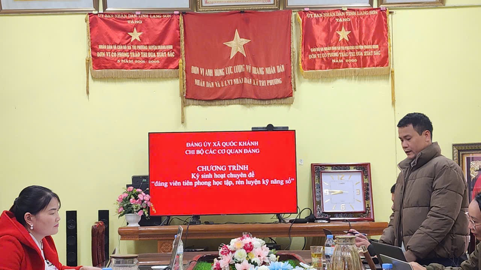 Thực hiện chỉ đạo của Đảng ủy xã Quốc Khánh về đẩy mạnh chuyển đổi số trong hệ thống chính trị cơ sở. Vừa qua, Chi bộ các Cơ quan Đảng đã tổ chức buổi sinh hoạt chuyên đề với chủ đề “Đảng viên tiên phong học tập, rèn luyện kỹ năng số”. Tham dự buổi sinh hoạt có các đồng chí trong cấp ủy chi bộ và toàn thể đảng viên.