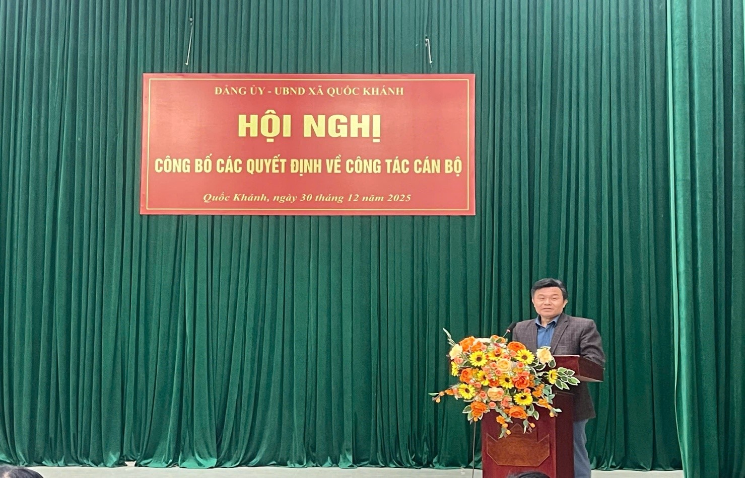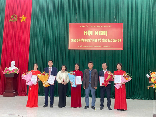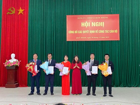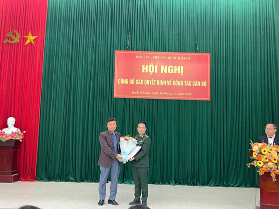 Thực hiện công tác cán bộ theo thẩm quyền, chiều ngày 30/12/2025, Đảng ủy – UBND xã Quốc Khánh đã long trọng tổ chức Lễ công bố Quyết định về công tác cán bộ.