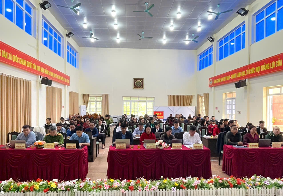 Tham dự Hội nghị tại điểm cầu xã Quốc Khánh có đồng chí Hoàng Anh Dũng - Bí thư Đảng ủy, Chủ tịch Hội đồng nhân dân xã; cùng sự tham gia của các đồng chí trong Ban Thường vụ, Ban Chấp hành Đảng bộ xã, trưởng các phòng, ban, ngành, đoàn thể, cán bộ, đảng viên trên địa bàn xã.