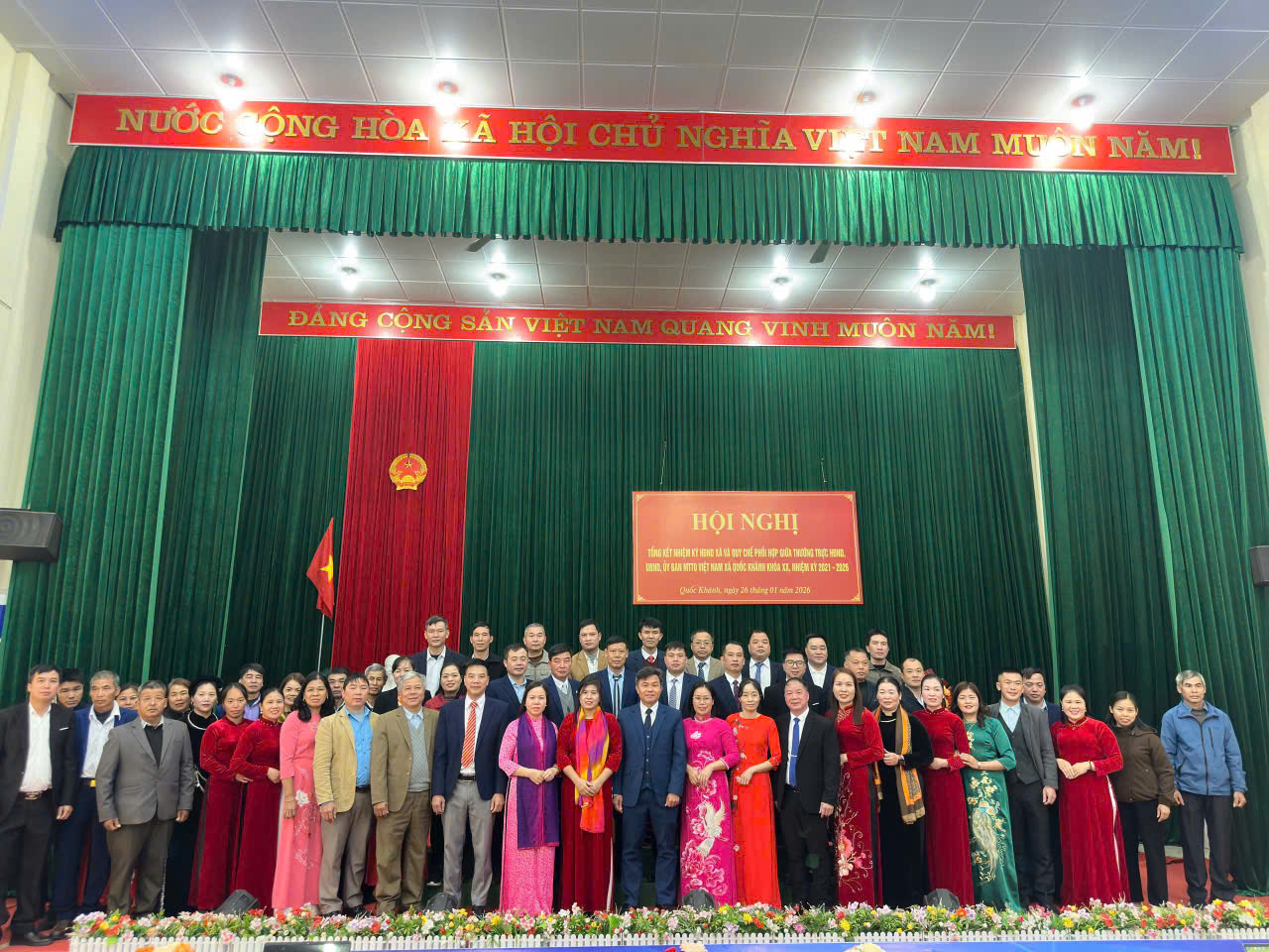Ngày 26/01/2026, Hội đồng nhân dân xã Quốc Khánh khóa XX, nhiệm kỳ 2021-2026 đã tổ chức hội nghị tổng kết nhiệm kỳ của HĐND xã và Quy chế phối hợp công tác giữa thường trực HĐND, UBND, Ban thường trực UBMTTQ Việt xã Quốc Khánh nhiệm kỳ 2021-2026.